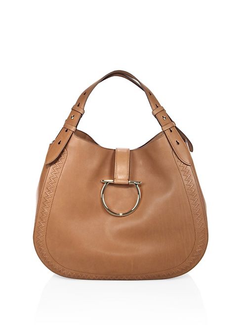 Salvatore Ferragamo - Large Perrine Gancio Bracelet Leather Hobo Bag