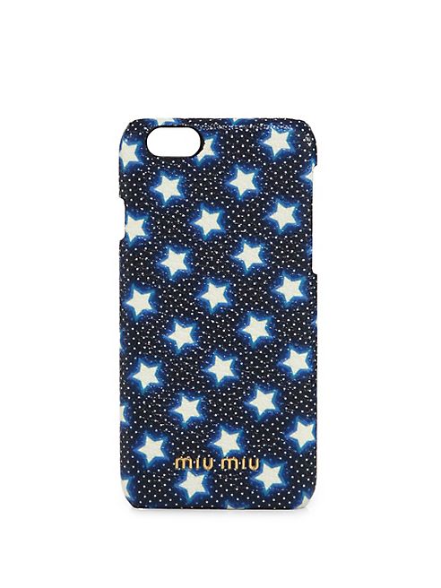 Miu Miu - Star-Print Madras Leather iPhone 6 Case