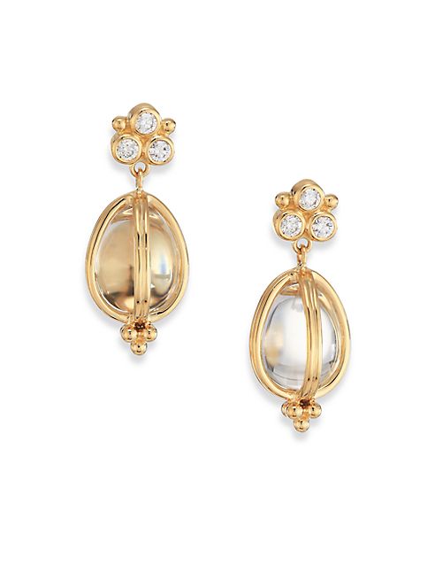 Temple St. Clair - Classic Rock Crystal, Diamond & 18K Yellow Gold Teardrop Amulet Earrings