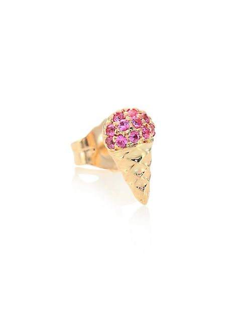 Sydney Evan - Small Ice Cream Cone Pink Sapphire & 14K Yellow Gold Single Stud Earring