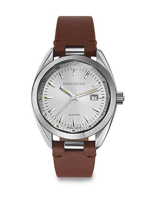 - Givenchy - Eleven Stainless Steel & Leather Strap Watch/Brown