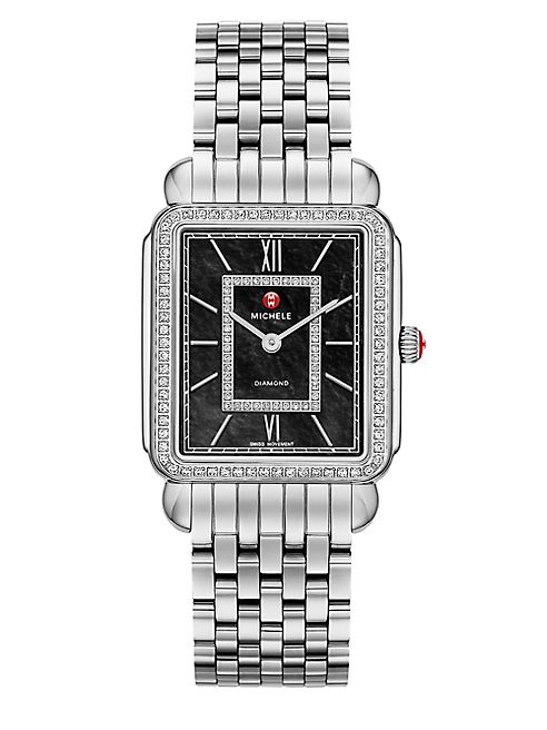- Michele Watches - Deco II 18 Diamond, Black Mother-Of-Pearl & Stainless Steel Bracelet Watch