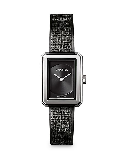 CHANEL - BOY•FRIEND Black Tweed Stainless Steel Bracelet Watch