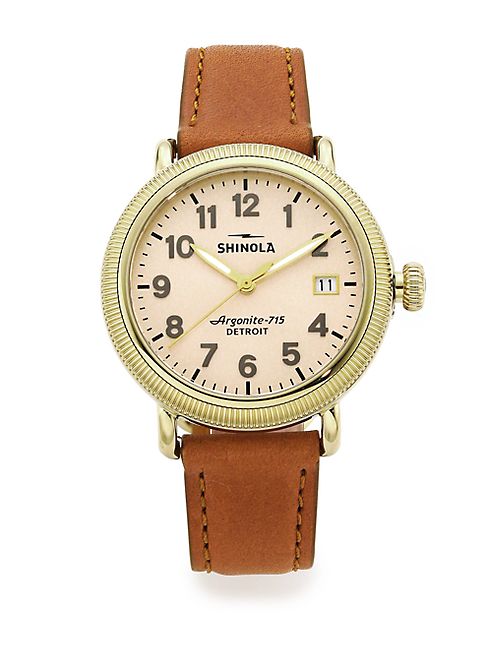 - Shinola - Runwell Coin Edge Goldtone Stainless Steel & Leather Strap Watch