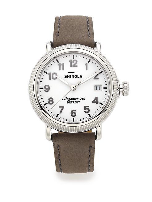 - Shinola - Runwell Coin Edge Stainless Steel & Leather Strap Watch