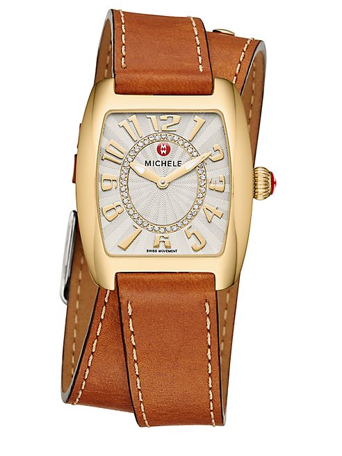 - Michele Watches - Urban Mini Diamond & Leather Double-Wrap Strap Watch
