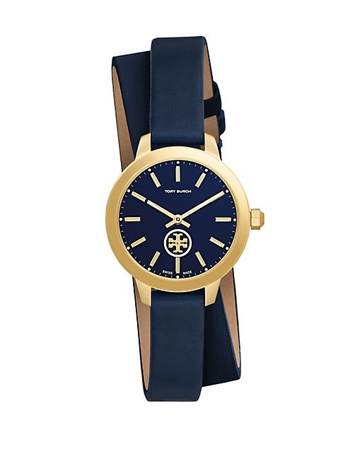 - Tory Burch - Collins Goldtone Stainless Steel & Leather Double-Wrap Strap Watch/Navy