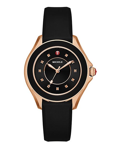 - Michele Watches - Cape Chronograph Topaz, Goldtone Stainless Steel & Silicone Strap Watch/Black