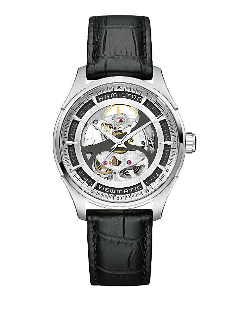 Hamilton - Jazzmaster Viewmatic Skeleton Gent Auto Stainless Steel & Embossed Leather Strap Watch