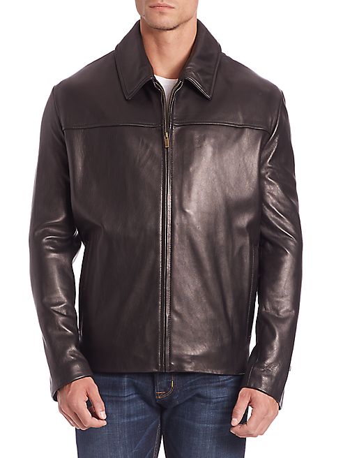 Andrew Marc - Long Sleeve Shirt Collar Leather Jacket