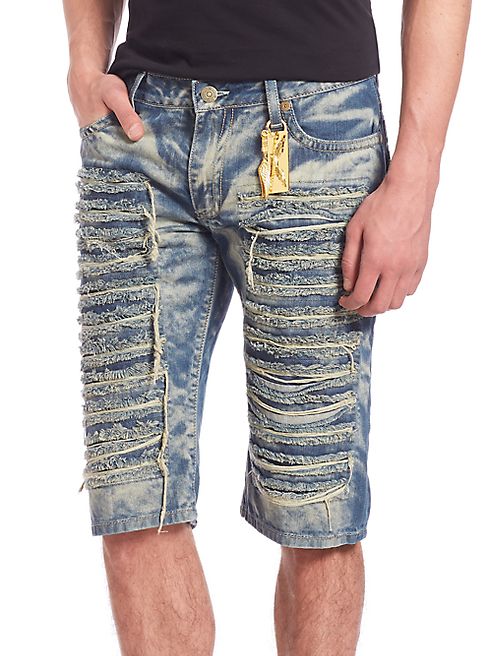 Robin's Jeans - Distressed Long Flap Denim Shorts