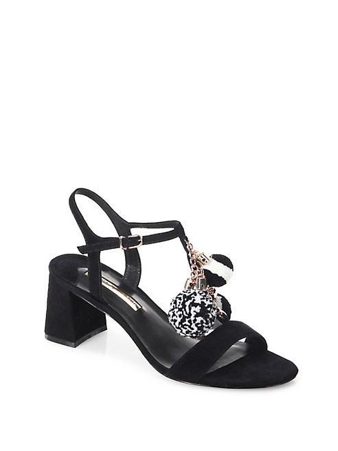Sophia Webster - Juno Pom-Pom Suede T-Strap Block Heel Sandals