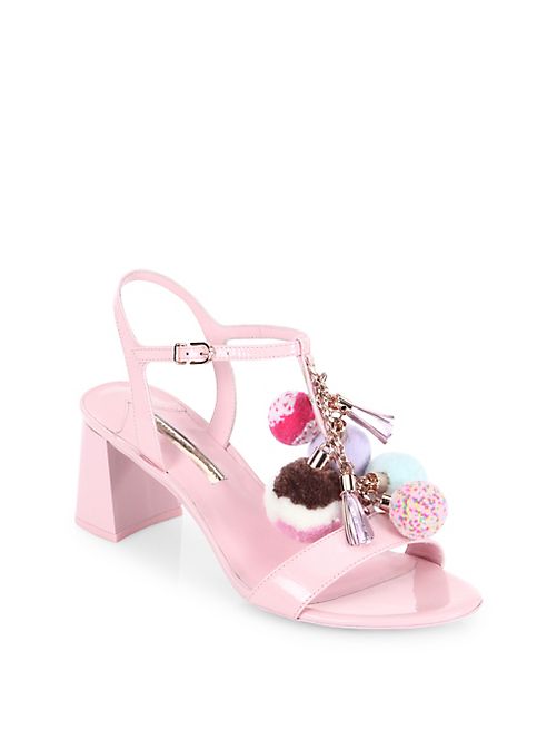 Sophia Webster - Juno Pom-Pom Patent Leather T-Strap Block Heel Sandals