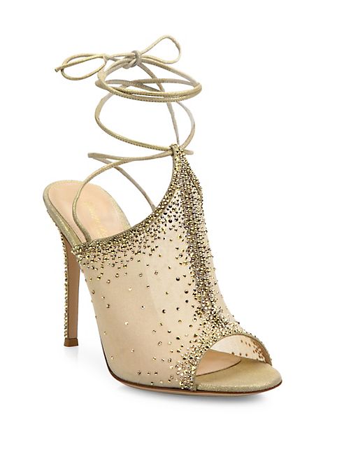 Gianvito Rossi - Etoile Mesh & Crystal Ankle-Wrap Peep Toe Mules