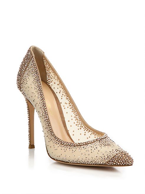 Gianvito Rossi - Mesh & Crystal Point Toe Pumps