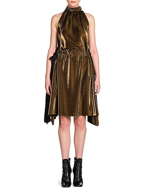 Fendi - Metallic Lurex Side-Tie Halter Dress