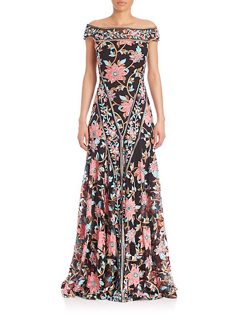 Basix Black Label - Off-The-Shoulder Floral Gown