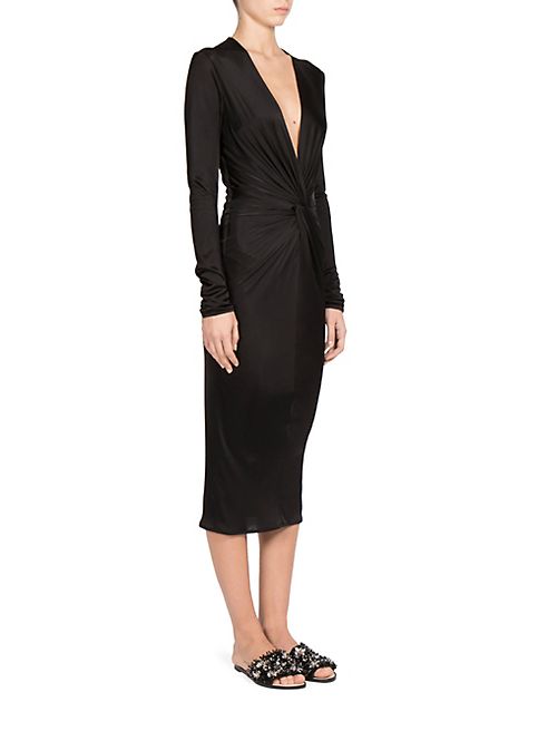 Lanvin - Satin V-Cut Twist-Front Dress