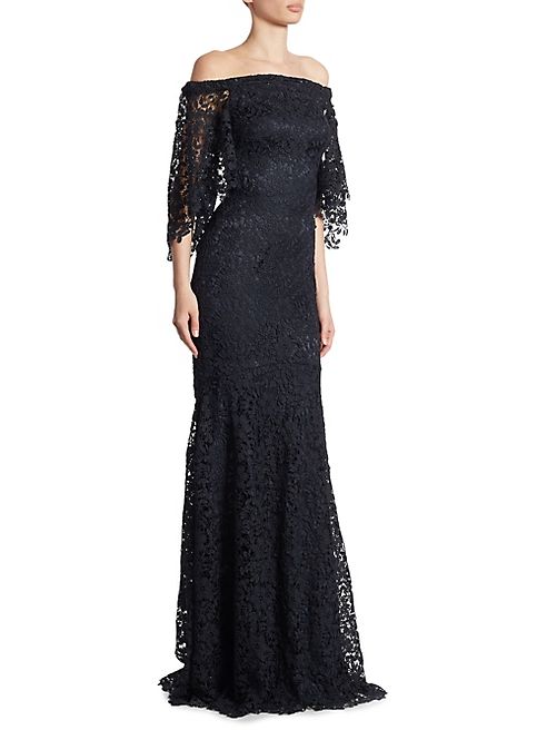 Theia - Off-The-Shoulder Lace Trumpet Gown