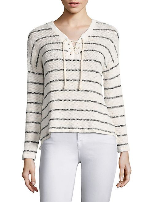 SUNDRY - Stripe Print Lace-Up Sweater