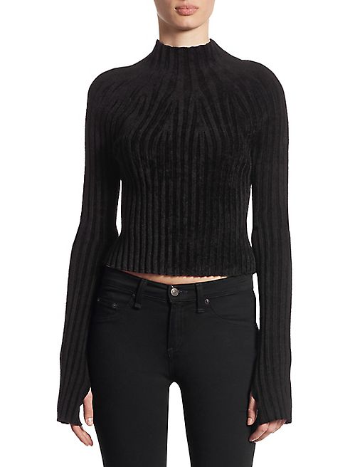 Helmut Lang - Cropped Velveteen Turtleneck Sweater