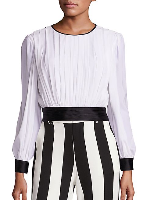 Alice + Olivia - Dakota Pleated Silk Blend Tie Waist Top