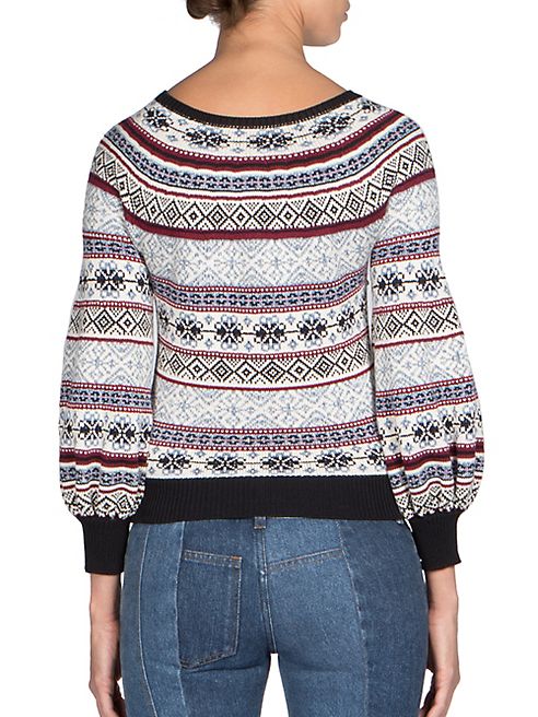 A sophisticated take on an everyday classic, a richly-hued, Fair Isle-inspired knit softens and adds polish to this chunky pullover sweater.
