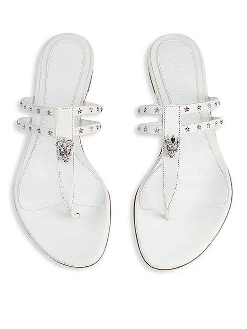 Alexander McQueen - Skull Star-Studded Leather Thong Sandals
