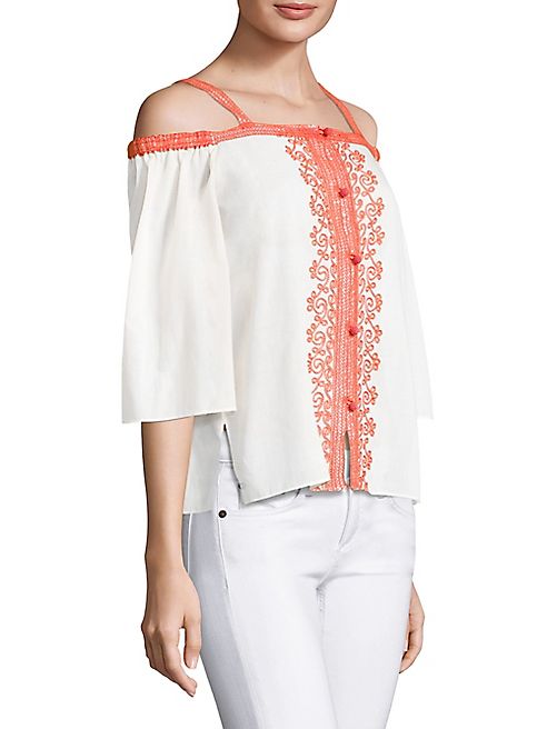 :Bailey 44 - Rose Water Embroidered Cold-Shoulder Top