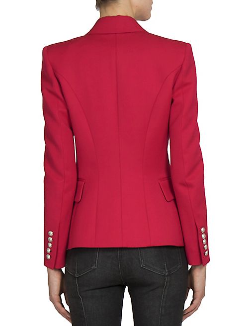 - Double-breasted jacket sharply tailored in luxe wool