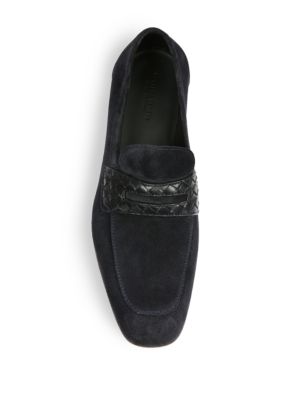 Superior craftsmanship characterizes these loaters, crafted from suede and intrecciato leather.