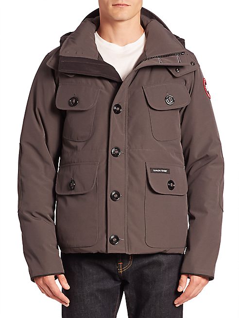Ample pockets lend sporty style to this durable coat, finished with a hood and filled with goose down for exceptional warmth.