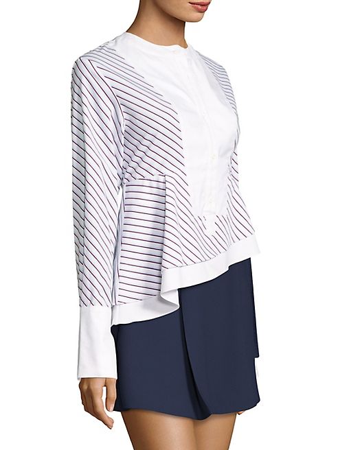 :Carven - Asymmetrical Striped Poplin Top