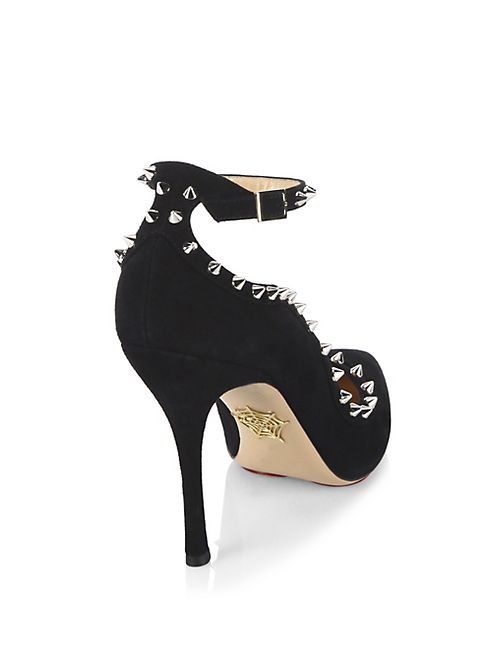 :Charlotte Olympia - Pimlico Studded Suede Ankle Strap Pumps