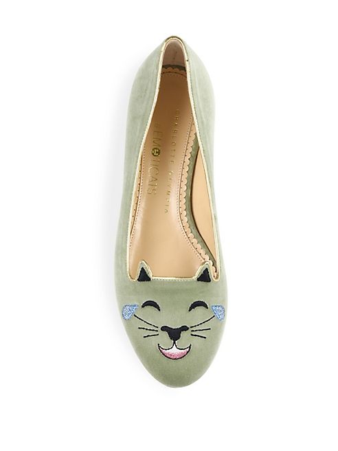Charlotte Olympia - Velvet LOL Emoticon Kitty Flats