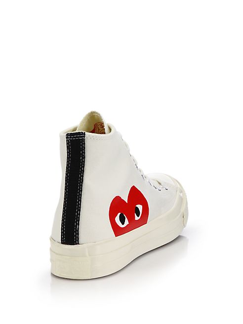 The signature heart icon curiously looks out from the side of these classic canvas high-top sneakers.