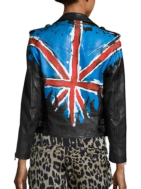 :Faith Connexion - Boxy Graphic Leather Moto Jacket