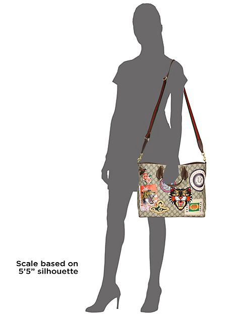 Travel continues to be a source of inspiration for Alessandro Michele. A collection of bags in the GG motif is enriched with a blend of contemporary embroideries and vintage inspired details, including airmail trims and a Gucci print from the archives. The appliqués are individually embroidered and then skillfully hand-applied to each piece by specialized artisans. This process ensures that no two items will be alike, giving each a one-of-a-kind appearance.