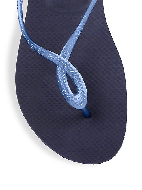 These Havaianas sandals are both chic and comfortable, thanks to a stunning top strap formation and the signature textured footbed. A slim metallic strap is braided at front and offers a sling back construction for heightened flair and uniqueness; the Havaianas logo completes the silhouette with an iconic appeal.