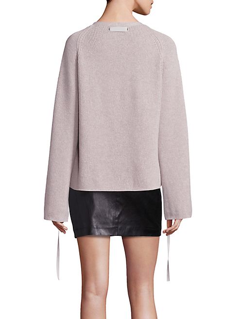 :Helmut Lang - Ribbon Sleeve-Detailed Wool Cashmere Sweater