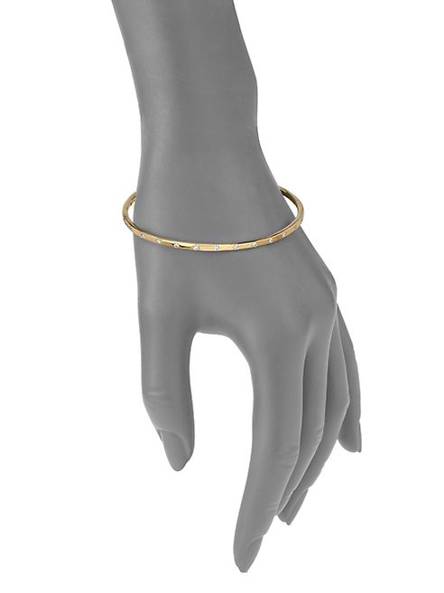 From the Glamazon Collection. A slender bangle bracelet cast of 18k yellow gold in a smooth, polished finish, a series of twenty-eight diamond solitaires inset flush against the band, with a glitter that amounts to almost three-quarters of a full carat.