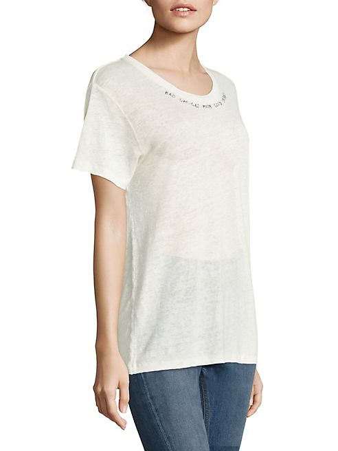 Quote prints elevate this soft textured tee