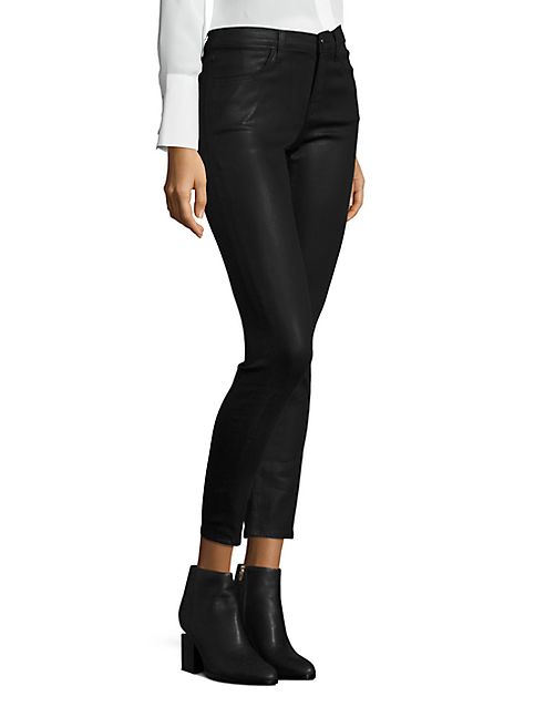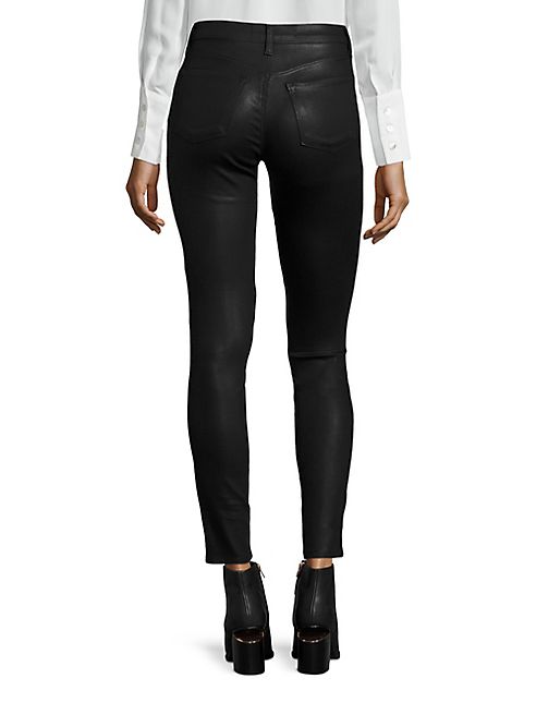 Coated for a subtle sheen, these skinny jeans have a sleek second-skin fit that's as flattering as it is cool.