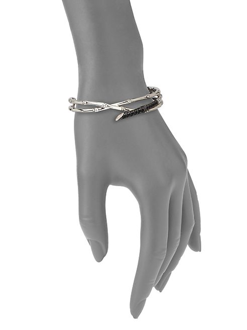 From the Bamboo Collection. Black sapphire pavé spreads with rich, deep shimmer upon a series of bamboo reeds in sterling silver, their lines curving, intersecting and crossing with sharp trajectory.