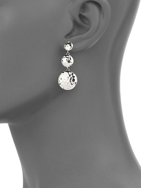 From the Palu Collection. An earring designed as a series of full, luminescent moons graduating steadily in size, cast from sterling silver with a hand-faceted finish to mimic lunar sheen.