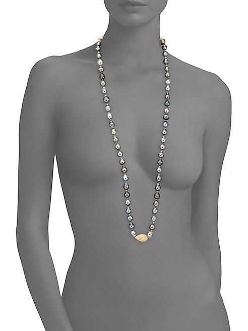 :Jordan Alexander - 10-12MM Grey Tahitian Pearl, Diamond & 18K Yellow Gold Strand Necklace
