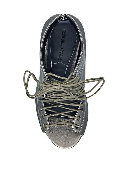 KENDALL + KYLIE - Ginny Metallic Leather Lace-Up Booties