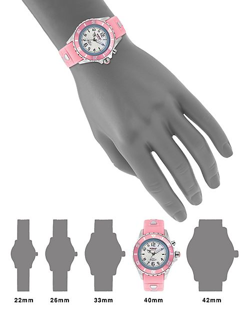 Sporty-chic watch secured atop pink silicone strap