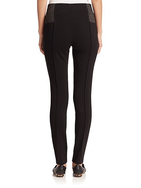 Crafted from universally flattering ponte for a smooth, comfortable fit, these versatile stretch pants feature raised seams and contrast details at the waist.