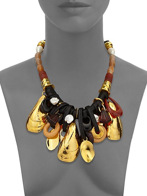 :Lizzie Fortunato - Mollusk 18-21MM Baroque Pearl, Agate & Leather Necklace